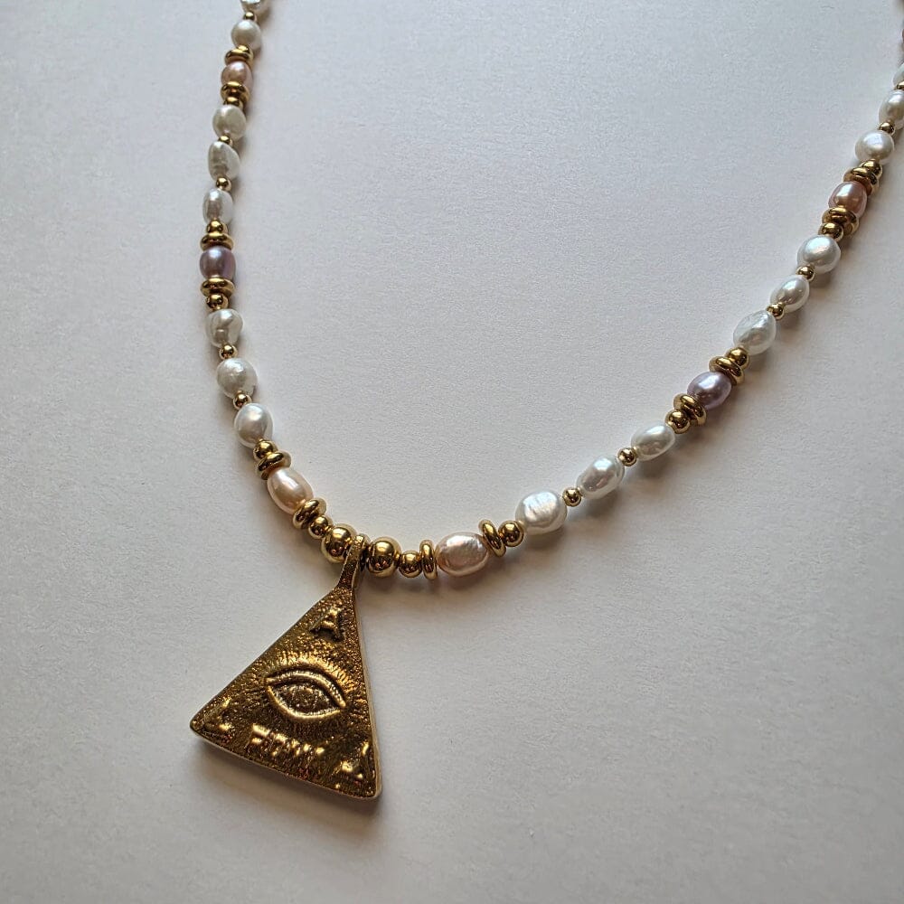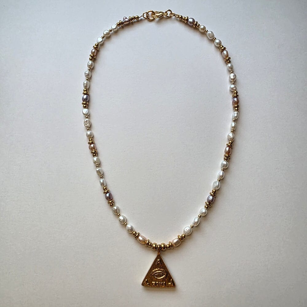 The Trespico Perlas ng Sirena is a sacred amulet, woven with elements that carry spiritual resonance of water and blessings of the powerful water deity, the Sirena. This unique piece combines the protective power of the trespico, the enchanting energy of freshwater baroque pearls, and the radiant strength of gold and brass to create a powerful talisman of protection and shield against the irritation of negative forces.