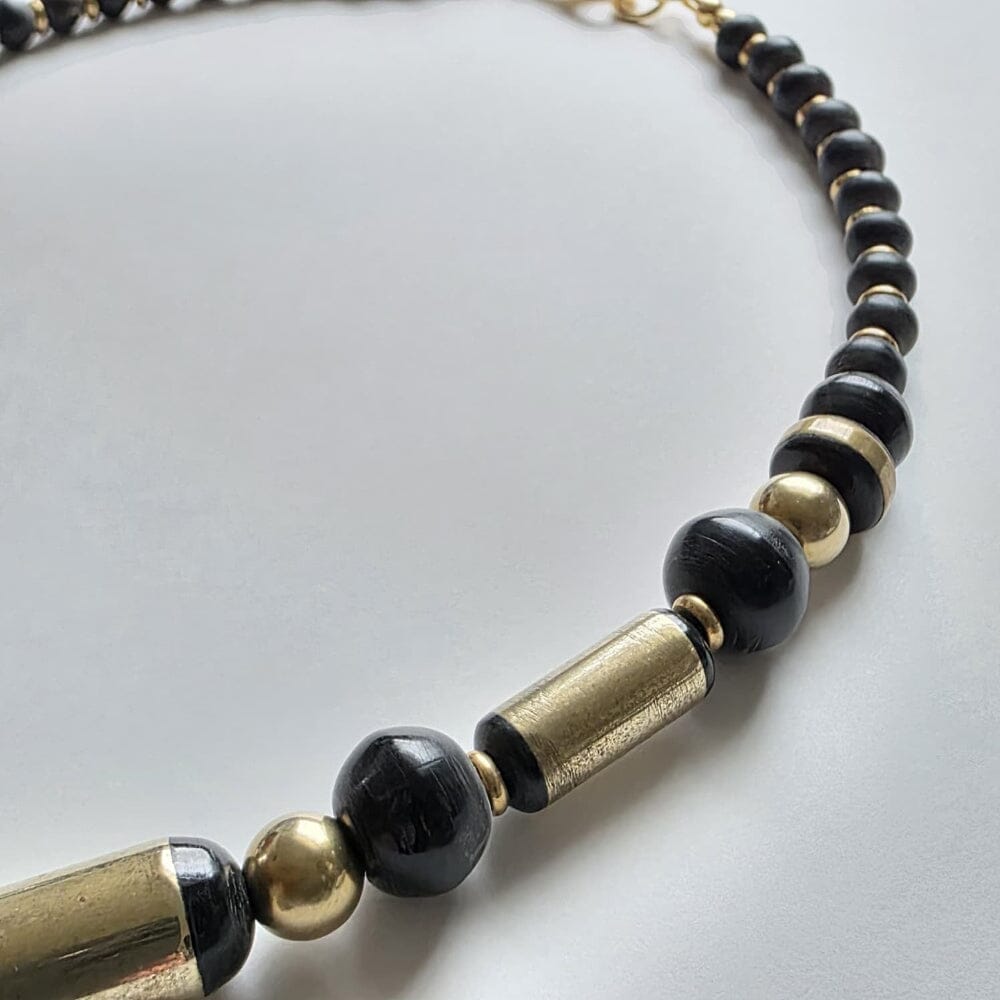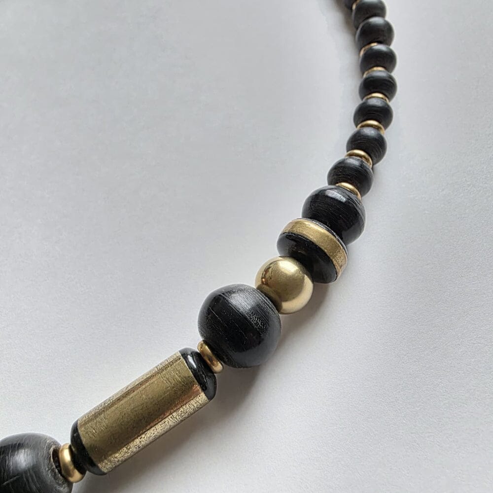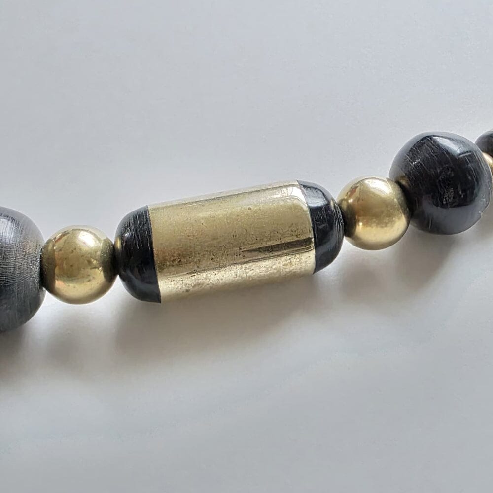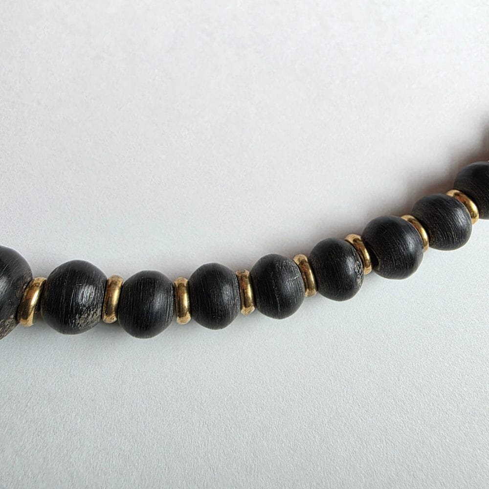 Water Buffalo Horn (Carabao): Features rare, vintage cylindrical and large rondelle beads with intricate brass inlays, complemented by minimalist flat disc rondelles. Represents strength and endurance. In Filipino spirituality, the water buffalo is a symbol of selfless service, and a deep connection to the earth. As a creature that bridges the mud of the fields and the life-giving water, its horn carries the energy of grounding and commanding presence. It represents the fortitude required to carry the burdens of the community and the patience needed to master the self.