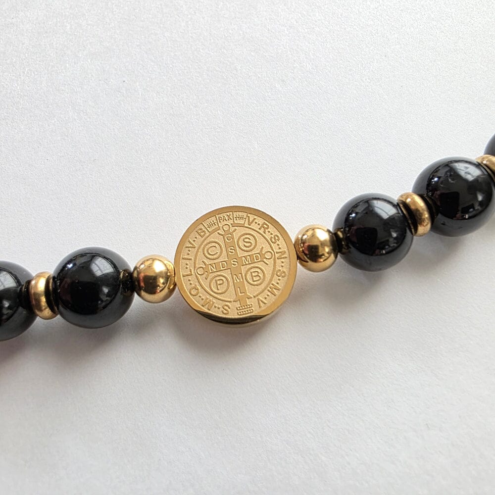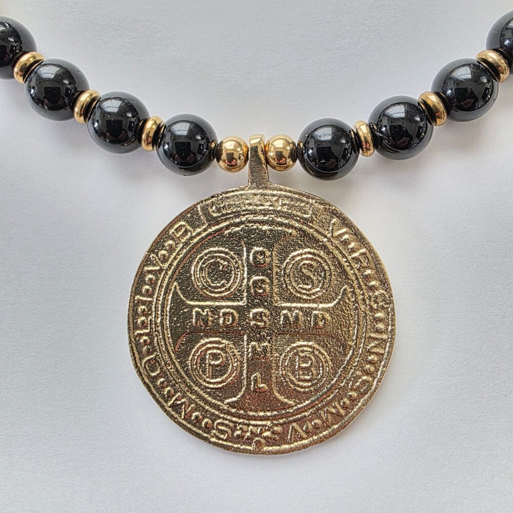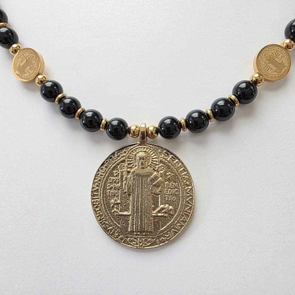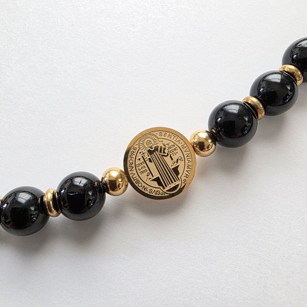 The Aegis Benedictus is a spiritual barricade. Designed for those who walk through heavy environments or face unseen opposition, this piece combines the ancient earth-defense of Black Tourmaline with the sovereign authority of the St. Benedict Medal.
