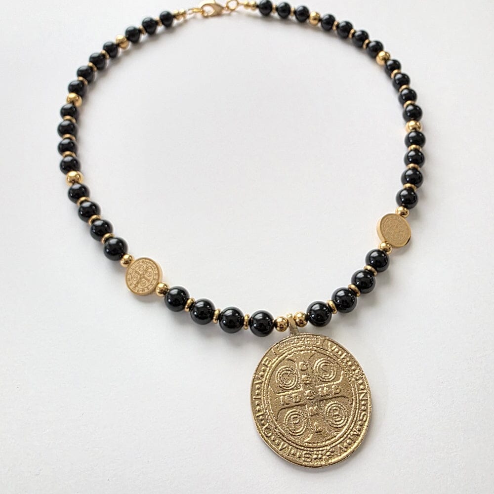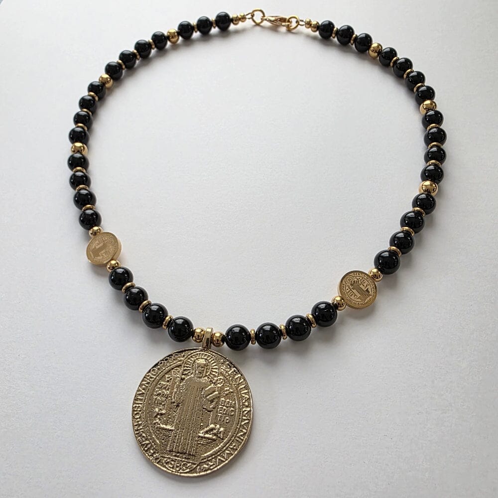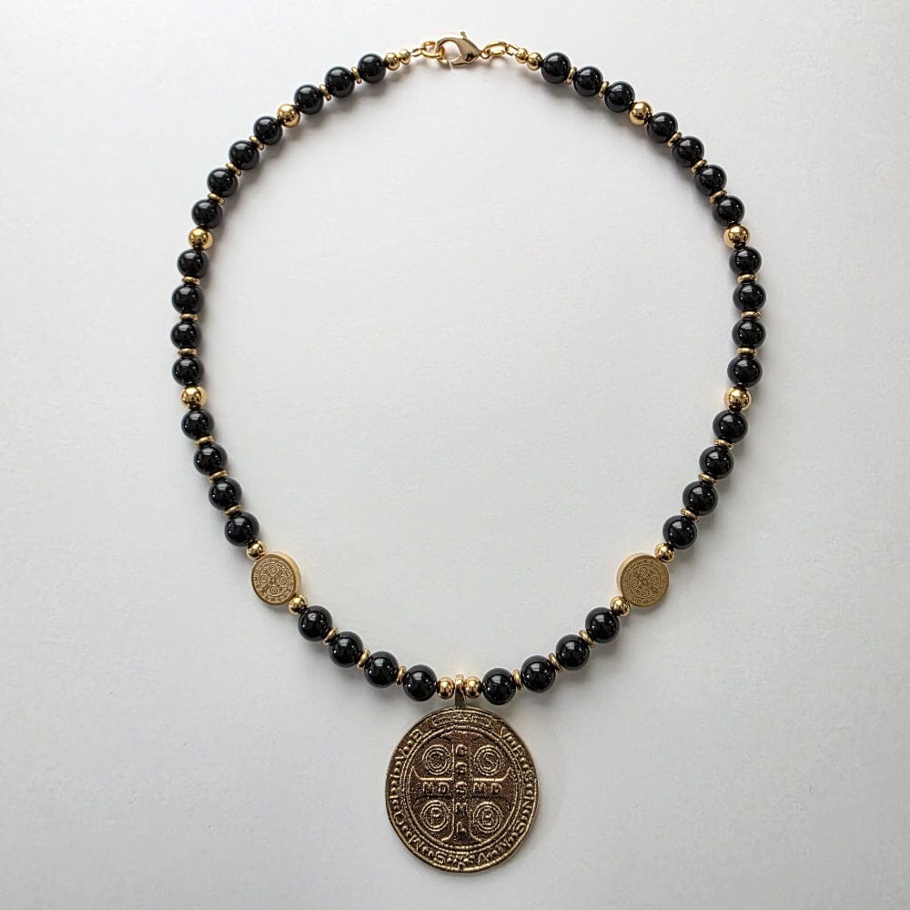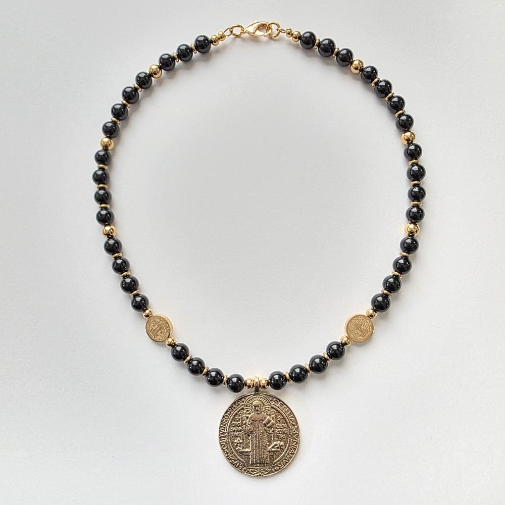 The Aegis Benedictus is a spiritual barricade. Designed for those who walk through heavy environments or face unseen opposition, this piece combines the ancient earth-defense of Black Tourmaline with the sovereign authority of the St. Benedict Medal.